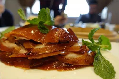 由于用的是填鴨,所以鴨子都巨肥,這樣烤出來表皮金黃,烤鴨皮是我最愛吃的,蘸上砂糖,放到嘴里嚼,焦香甘甜啊,滿嘴油。