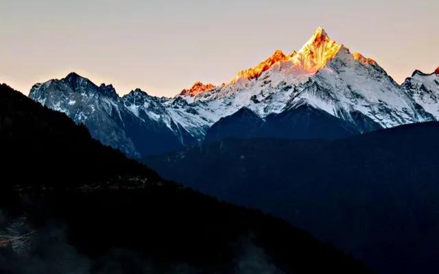 翻越雪山后來到位于滇西北的德欽,附近有藏區(qū)八大神山之首的梅里雪山,又稱太子雪山十三峰,其主峰卡瓦格博峰海拔6740米,是云南第一高峰。