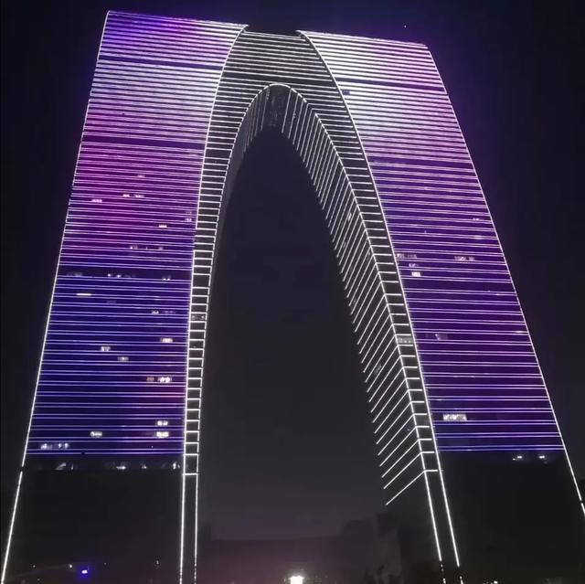 從觀前街坐地鐵樂橋站上車到東方之門只有六站,三號口出來就到了東方之門。東方之門,俗稱秋褲樓,被譽(yù)為“世界第一門",是蘇州金雞湖標(biāo)志性建筑,夜晚的東方之門美輪美奐,漂亮異常。