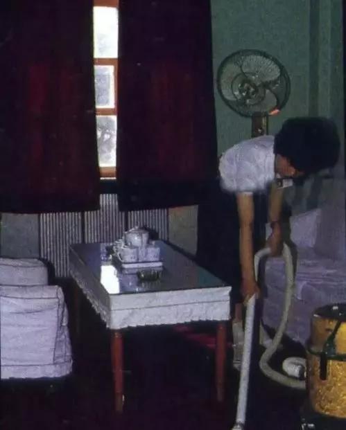 服務員在為房間清理衛(wèi)生,吸塵器清理地毯。那時候這家旅店的服務員都是國營職工,不像現在多是臨時工或者鐘點工。