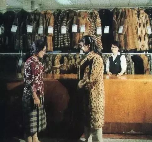 聯(lián)營公司的皮毛服裝部,照片上的女子穿著的像是一件猞猁皮大衣。在那個年代,人們對野生動物保護還沒有重視,更沒有《野生動物保護法》,所以,那時候類似沈陽聯(lián)營公司這樣的大型百貨商店皮貨部銷售的裘皮服裝,有狐貍、貉、貂等動物皮制作的服裝也屬于很正常的。