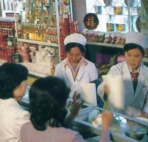 這是沈陽聯(lián)營公司當年的化妝品柜臺,同樣,顧客是不能直接接觸到商品的,只有通過照片上的營業(yè)員隔著柜臺將你想看或者想買的商品遞給你。因此,那時候商店對營業(yè)員就有一個叫做“百問不煩”、“百拿不厭”的要求。