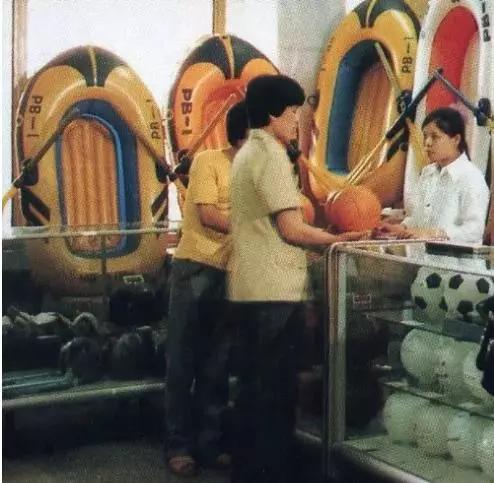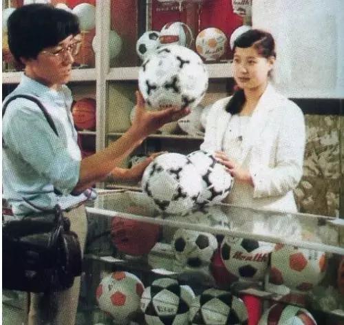 賣球類的柜臺前,那時候商品總是用柜臺與顧客隔開。