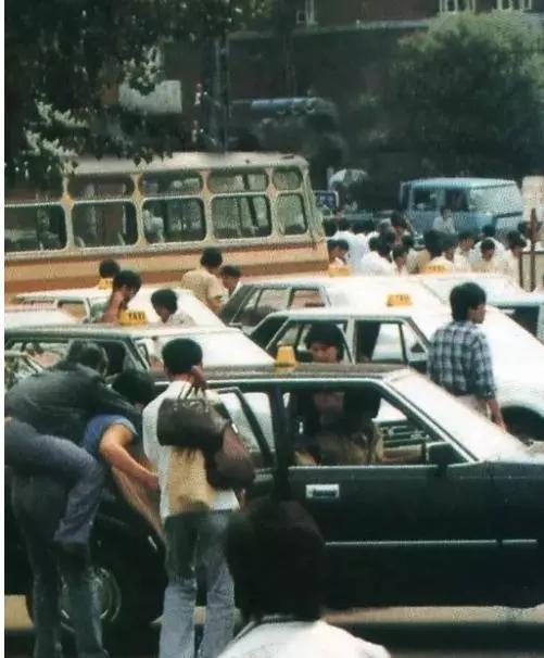 位于沈陽站前廣場北側國營旅社介紹處附近,沈陽出租汽車公司等著載客的出租車,那時出租車的“TAXI”頂燈看上去比現在簡單得多。
