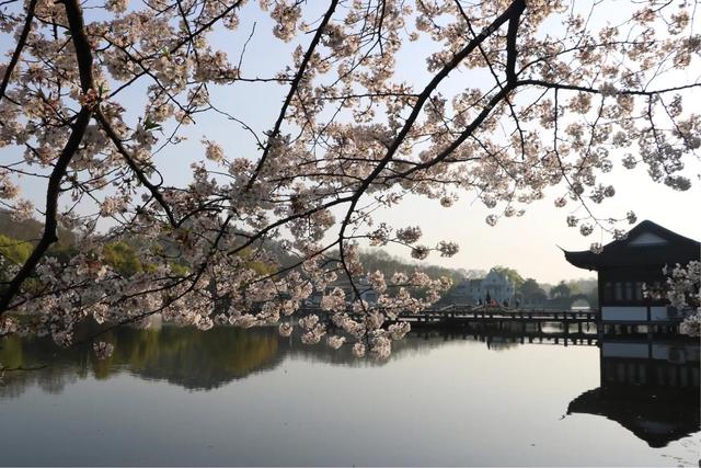 春天曲院風(fēng)荷的西湖與古建筑,還有櫻花的完美組合。