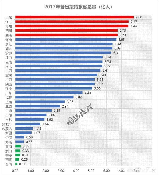 這是游客接待量,山東、江蘇、貴州屬于第一梯隊(duì),全年都超過(guò)7億人次。6億人次以上的有四川、湖南、河南、浙江、湖北、安徽。