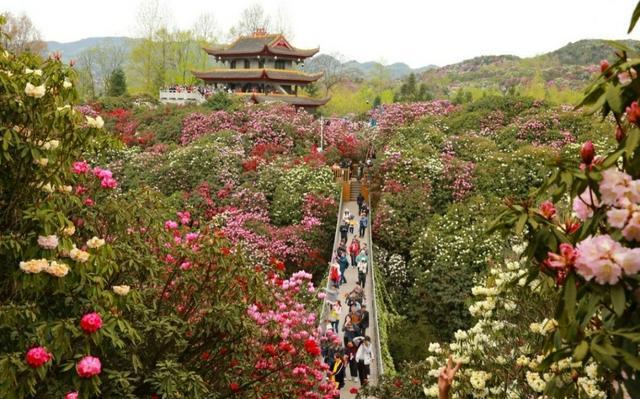 百里杜鵑風(fēng)景名勝區(qū)位于貴州省西北部,總面積約125.8平方公里。公園內(nèi)有馬纓杜鵑、露珠杜鵑、團(tuán)花杜鵑等41個(gè)品種,囊括了世界杜鵑花5個(gè)亞屬的全部。這里被譽(yù)為“世界上最大的天然花園”,享有“地球彩帶、世界花園”之美譽(yù)。暮春3月下旬至5月各種杜鵑花競相怒放,漫山遍野,千姿百態(tài),鋪山蓋嶺,五彩繽紛。
