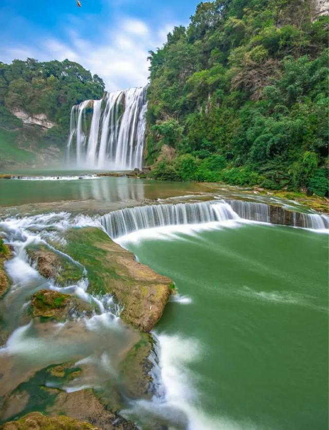 黃果樹瀑布,位于中國貴州省安順市鎮(zhèn)寧布依族苗族自治縣。瀑布高度為77.8米,其中主瀑高67米;瀑布寬101米,其中主瀑頂寬83.3米。黃果樹瀑布屬喀斯特地貌中的侵蝕裂典型瀑布。