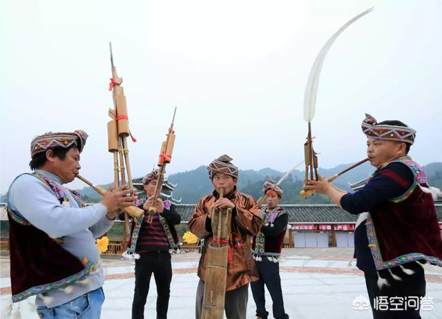 二、“吹蘆笙”;蘆笙,是苗族同胞們常用的一種簧管樂(lè)器,由大大小小的“竹筒”制成,可以發(fā)出各種深沉、洪亮的聲音。春節(jié)期間各個(gè)村寨的蘆笙隊(duì)都會(huì)在自己村里的“蘆笙堂”里吹起悠揚(yáng)的蘆笙,慶祝新年的到來(lái),同時(shí)期盼來(lái)年能取得一個(gè)好的收成。