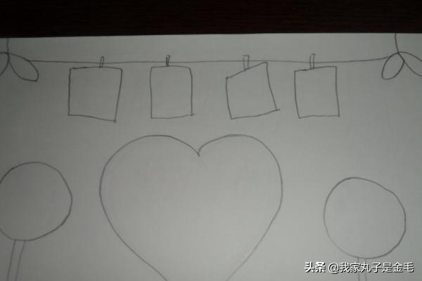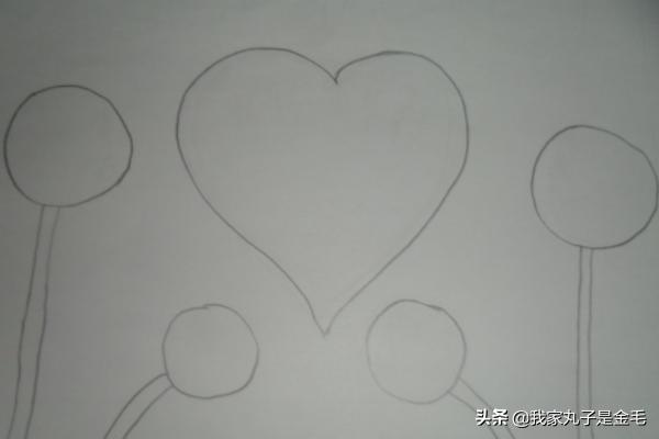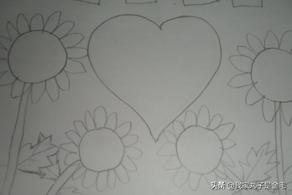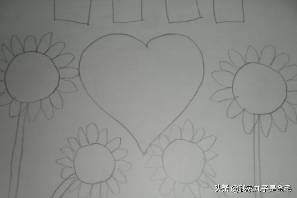 3、在兩邊畫出兩大圓形似葵花圓盤。