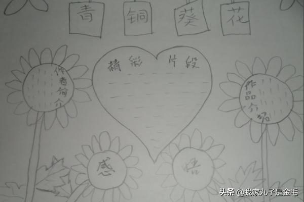 《青銅葵花》是中國兒童文學作家曹文軒寫的,一部很感人的親情故事。要做手抄報的話,不必要太密密麻麻,只要能體現(xiàn)表達出意思,簡簡單單就好。