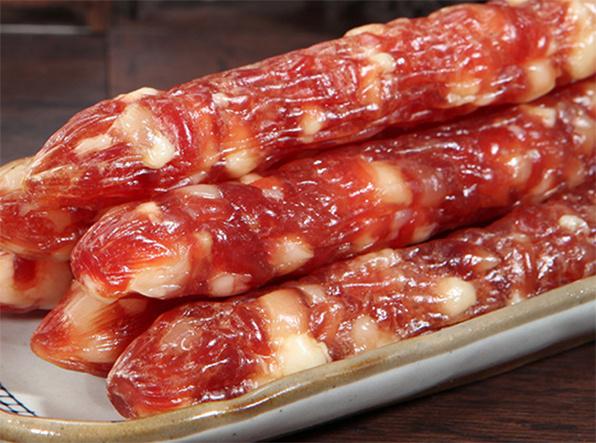 此皇上皇非彼煌上煌,它可是響當當?shù)闹腥A老字號,有70多年歷史了,同樣是來自廣州,是傳統(tǒng)廣式臘味代表品牌?;噬匣仕鼈兗易畛雒?、最經(jīng)典、最熱賣的美食就是臘腸。