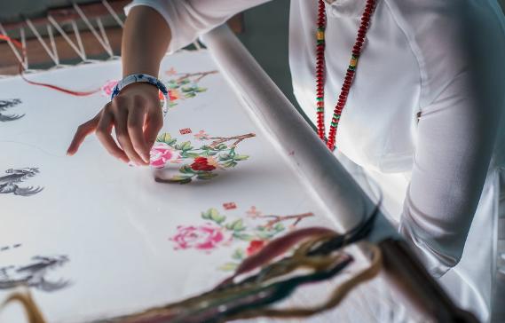 發(fā)繡又稱墨繡,是以人發(fā)作繡線,在綢或絹上刺繡而成的作品。原來是佛教信女為了表達(dá)虔誠,以頭發(fā)繡成佛像用于膜拜。后來的發(fā)展突破了宗教題材,成為一種摹物繡景的工藝品。要完成一幅完整的發(fā)繡精品需要經(jīng)過設(shè)計(jì)、勾樣、刺繡以及裝裱等工藝過程,成品具有新奇別致、清秀淡雅、不褪色、耐腐蝕、便于收藏等特點(diǎn)。東臺發(fā)繡題材廣泛,在半繡半繪中形神皆備,匠心獨(dú)具。雙面發(fā)繡和雙色發(fā)繡更是色彩斑斕,華麗多姿,既有水墨畫的意味,又能體現(xiàn)民族風(fēng)格。