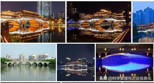 九眼橋:古典與現(xiàn)代和諧之美九眼橋古名宏濟(jì)橋,又名鎮(zhèn)江橋,始建于明萬(wàn)歷二十一年(1593),由當(dāng)時(shí)布政使余一龍所建。系石欄桿、石橋面的大拱橋,長(zhǎng)4寬3高3丈,下有9洞。在清朝乾隆五十三年(1788)由總督李世杰補(bǔ)修時(shí),改名為九眼橋,橋如其名,共有9洞。古人愛(ài)用“長(zhǎng)虹臥波”來(lái)形容石拱橋的壯麗,可是九眼橋卻不是―道“長(zhǎng)虹”,而是一張“彎弓”。在橋南不遠(yuǎn)處曾經(jīng)有過(guò)一座與橋同期建造的回瀾塔(俗名白塔)與之相映成趣,構(gòu)成“橋是彎弓塔是箭”的奇特景觀。