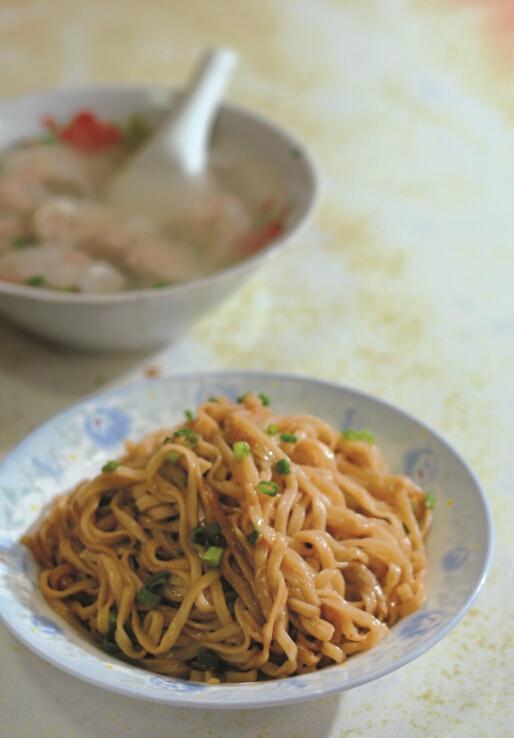 散發(fā)著豬油、花生醬香味的拌面,與輕盈漂浮于清湯里的扁肉,可以算是福州小食里最經(jīng)典的“情侶套餐”,在一天的任何時段都可以吃上這么一小頓。