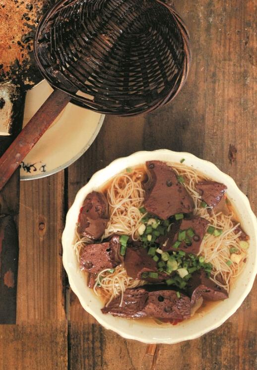 鼎邊糊配蝦酥是老福州的地道早點。福州立夏舊時習俗家家戶戶抆鼎邊糊,鄰里互贈,以示常來常往“一抆就熟”。- 豬血化 -