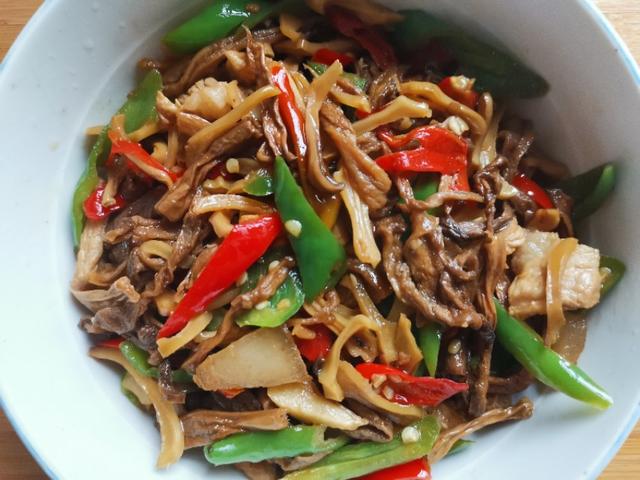 在壇子里面把干菜拿出來,里面有豆角,茄子,南瓜花等的干菜在,把它放在碗里備用。準(zhǔn)備一份瘦肉,洗凈之后切成小塊。把準(zhǔn)備好的大蒜,辣椒,姜片,蔥也切好,放置在周邊備用。熱鍋稍微多放點油,因為壇子干菜如果油不多的話不好吃,影響口感。把大蒜,辣椒爆香放入切好的瘦肉進去翻炒,過一會再把準(zhǔn)備好的干菜也放進去繼續(xù)翻炒最后把辣椒也放進去翻炒,直到里面的湯汁快干即可出鍋最后撒上一點一點蔥花在上面即可,一碗美味又下飯的壇子菜炒肉就出來了。最后如果可以,搭配一個湯菜,比如雞蛋湯,一餐的美味就從吃飯開始。