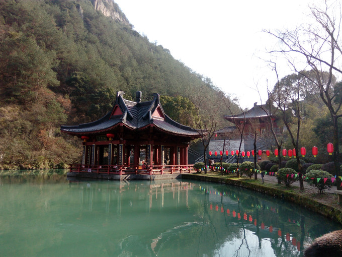 鼎湖峰溯溪而上數(shù)百米有巖山,高臨溪上,下有深潭。宋代理學(xué)家朱熹常憩于此,故巖名晦翁巖,潭名朱潭。站在仙堤上,遙望鼎湖峰,您可以欣賞到奇峰、秀山、松濤、柳園、小橋、流水。